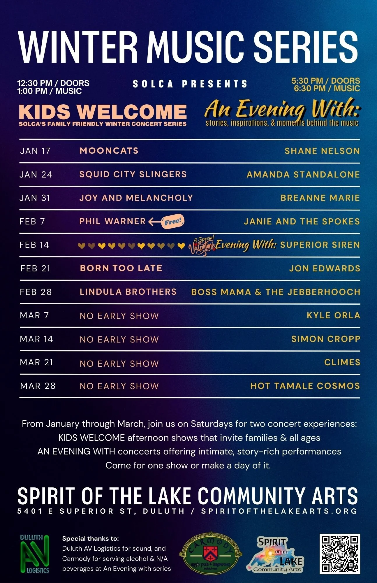 Live music returns to Spirit of the Lake Community Arts this winter.